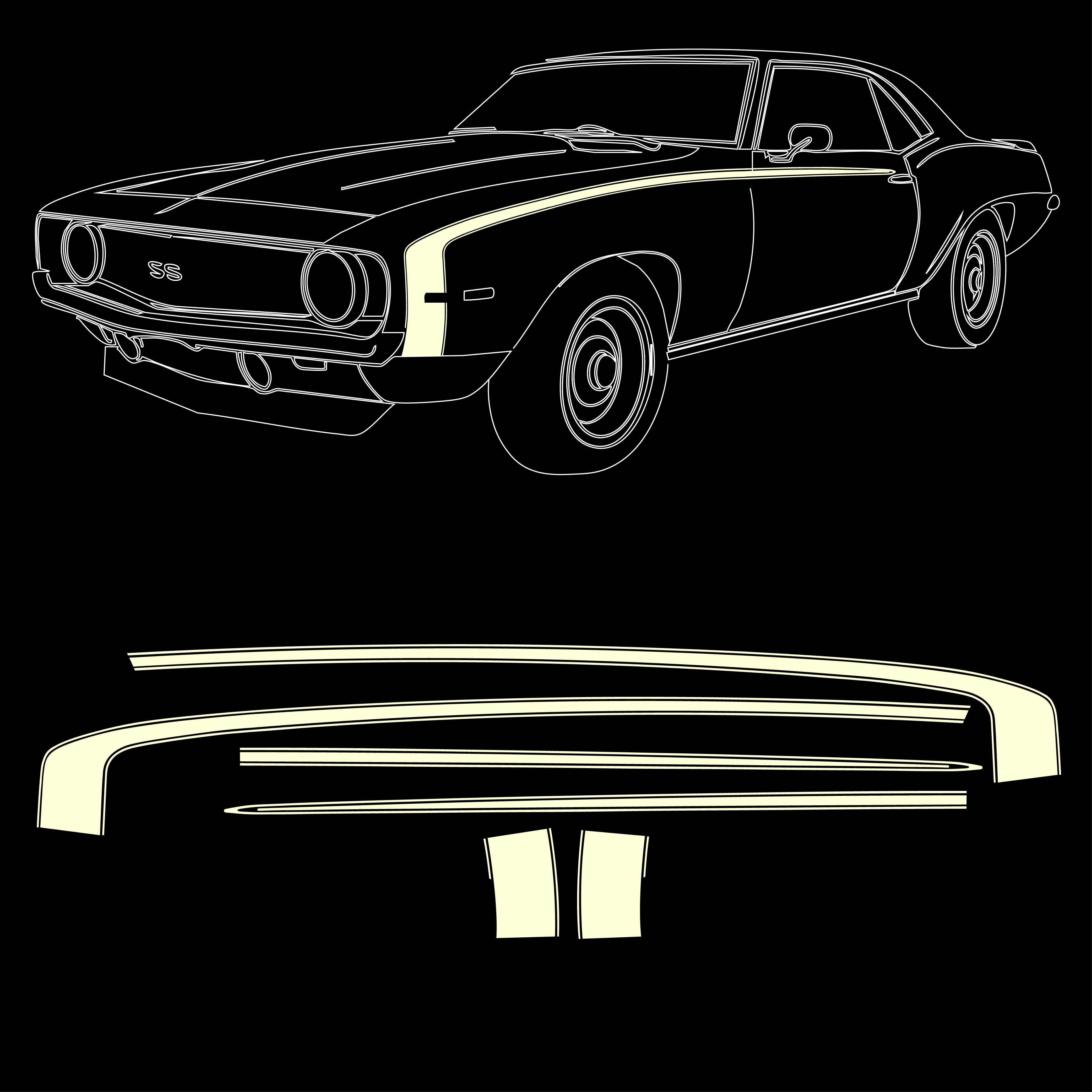 Description1969 SS Camaro Original Style Hockey Stick All Vinyl Red Stripe Kit