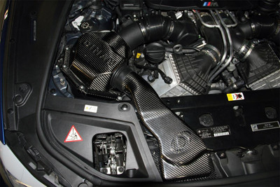 The Dinan high flow carbon fiber cold air intake, like most Dinan products, has a sleek and functional appearance that embodies high performance. The cold air intake allows cool outside air to be pushed into the engine via a pair of supplemental carbon fiber intake ducts located at the front of the engine bay. The cold air intake system was carefully designed within tight packaging constraints and in consideration of ideal aerodynamic diffusing angles to optimize the efficiency and performance of this induction system. Each duct leads combustion air through a custom designed intake assembly that has a larger than stock metered air flow housing, as well as a Dinan conical air filter with a 77% larger capacity. Dinan engineers have painstakingly developed custom tooling to ensure the entire Dinan cold air intake system is sealed like a factory replacement, thereby preventin