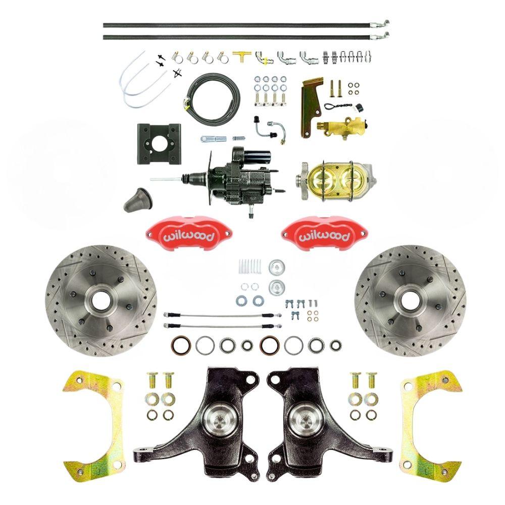 Description1963-66 Chevy/GMC Truck Performance Series, 2" Drop, Hydro Boost Disc Brake Conversion, Wilwood Calipers, Drilled and Slotted Rotors, and Braided Stainless Hoses