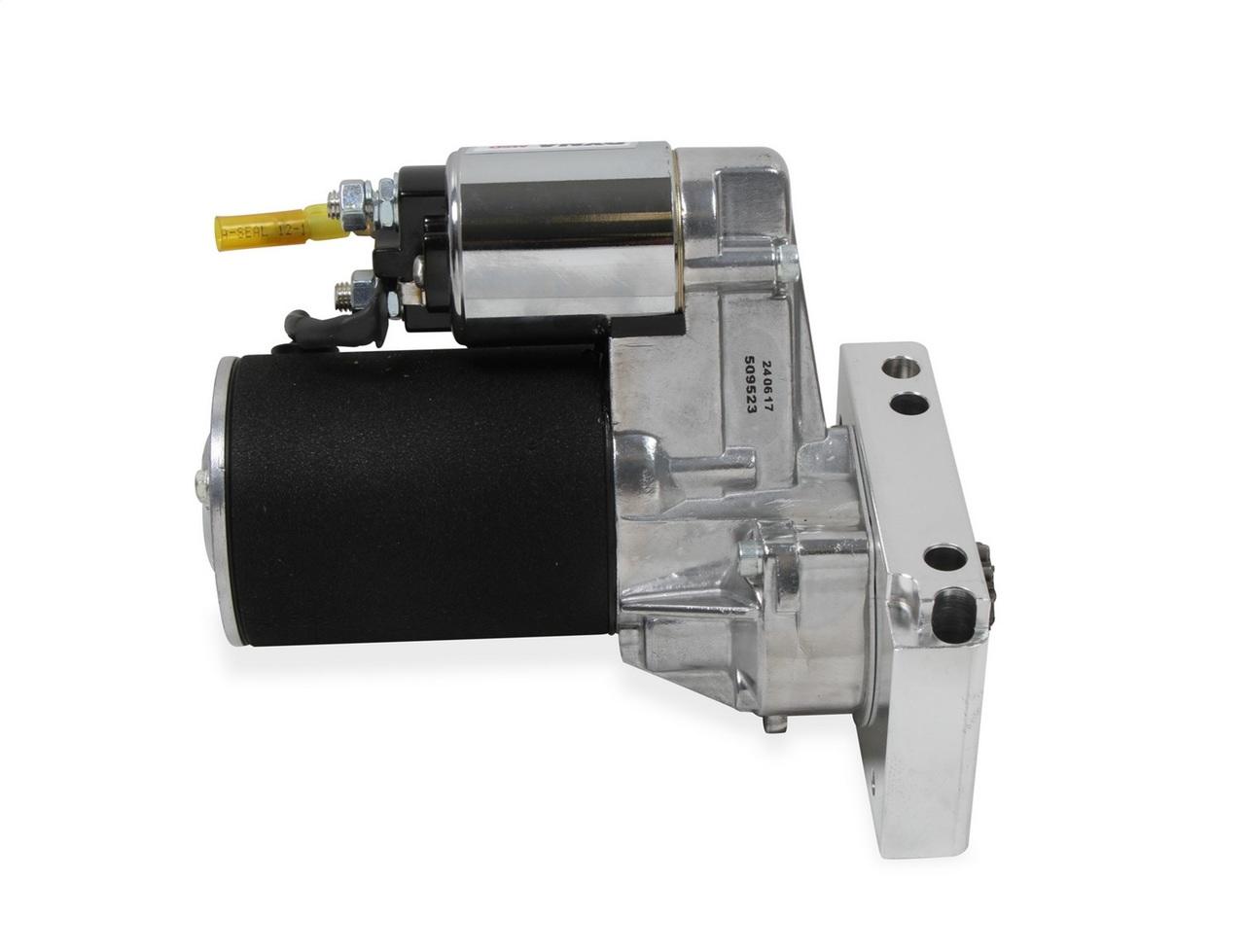 DescriptionHigh Speed DynaForce® Starter; Chevy; 158/168 Tooth; 3.73:1 Gear Reduction; Adjustable Mounting Block; HD High Temp Solenoid For 12-16V Systems; 25% More Cranking Speed; Black;